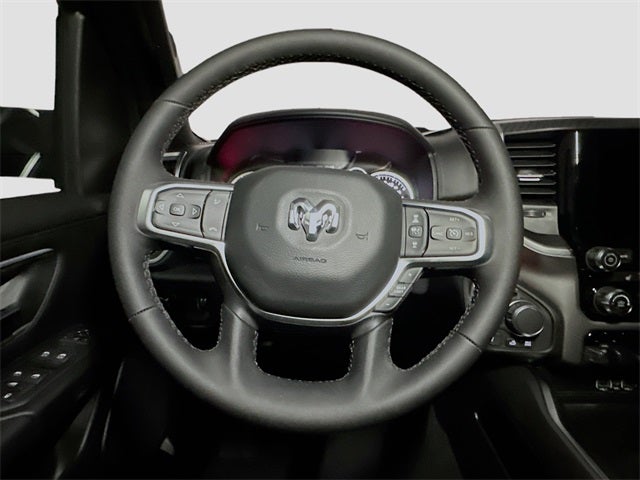 Granite Crystal Metallic Clearcoat 2026 Ram 1500 Big Horn/Lone Star 4WD HEMI 5.7L V8 Multi Displacement VVT eTorque 4D Crew Cab 8-Speed Automatic 115V Auxiliary Power Outlet, 2nd Row in Floor Storage Bins, 3 Rear Seat Head Restraints, 4 Way Front Headrests, 4-Wheel Disc Brakes, 400W Inverter, 48V Belt Starter Generator, 4G LTE Wi-Fi Hot Spot, 6 Speakers, ABS brakes, Accent Color Door Handles, Accent Color Premium Power Mirrors, Accent Color Tailgate Handle, Air Conditioning, Alloy wheels, AM/FM radio, Anti-Spin Differential Rear Axle, Apple CarPlay, Apple CarPlay/Android Auto, Auto High-beam Headlights, Auto Power-Folding Mirrors, Auto-Dimming Exterior Driver Mirror, Auto-Dimming Rear-View Mirror, Big Horn Level 1 Equipment Group, Black Exterior Mirrors, Black Exterior Truck Badging, Black Headlamp Bezels, Black Interior Accents, Black Painted Exterior Mirrors Caps, Black Premium Power Mirrors, Black Tail Lamp Bezels, Body Color Fender Flares, Body Color Front Bumper, Body Color Rear Bumper with Step Pads, Brake assist, Bucket Seats, Bumpers: chrome, Center Console Parts Module, Cloth Bucket Seats, Compass, Connectivity - US/Canada, Convex Wide-Angle Exterior Mirror Insert, Delay-off headlights, Deluxe Cloth Bucket Seats, Driver door bin, Dual Exhaust with Black Tips, Dual front impact airbags, Dual front side impact airbags, E-Locker Rear Axle, Electronic Stability Control, Exterior Mirrors Courtesy Lamps, Exterior Mirrors with Heating Element, Exterior Mirrors with Supplemental Signals, Front anti-roll bar, Front Bucket Seats, Front Center Armrest w/Storage, Front Extra Heavy Duty Shock Absorbers, Front fog lights, Front License Plate Bracket, Front reading lights, Front Seat Back Map Pockets, Front wheel independent suspension, Full Length Floor Console, Fully automatic headlights, Global Telematics Box Module, Glove Box Lamp, Google Android Auto, GPS Antenna Input, Grille Black Surround Black Mesh, Heated door mirrors, Heated Front Seats, Heated Steering Wheel, Illuminated entry, Integrated Center Stack Radio, Integrated Voice Command with Bluetooth®, Leather Wrapped Steering Wheel, Low tire pressure warning, Manual Adjust 4-Way Driver Seat, Manual Adjust 4-Way Front Passenger Seat, Manual Folding Exterior Mirrors, Manufacturer's Statement of Origin, Mopar Black Tubular Side Steps, Night Edition, Occupant sensing airbag, Off Road Decals, Off Road Group, Outside temperature display, Overhead airbag, Overhead console, Panic alarm, ParkView Rear Back-Up Camera, Passenger door bin, Passenger vanity mirror, Power 2-Way Driver Lumbar Adjust, Power Adjust 8-Way Driver Seat, Power Adjustable Pedals, Power door mirrors, Power steering, Power windows, Quick Order Package 27Z Big Horn, Radio data system, Radio: Uconnect 5 W with 8.4 Display, Raised Ride Height, RAM Grille Badge - Black, RAM Grille Badge - Chrome, Rear 60/40 Folding Seat, Rear anti-roll bar, Rear Center Armrest, Rear Dome with on/Off Switch Lamp, Rear Extra Heavy Duty Shock Absorbers, Rear Power Sliding Window, Rear step bumper, Rear Window Defroster, Remote keyless entry, Selec-Speed Control, SiriusXM Radio Service, SiriusXM Satellite Radio, Speed control, Steering Wheel Mounted Audio Controls, Sun Visors with Illuminated Vanity Mirrors, Supplier Part Tracking (J-1), Tachometer, Telescoping steering wheel, Tilt steering wheel, Tow Hooks, Traction control, Trailer Brake Control, Trip computer, Universal Garage Door Opener, USB Host Flip, Variably intermittent wipers, Voltmeter, Wheels: 20 x 9.0 Aluminum Painted Clad.
