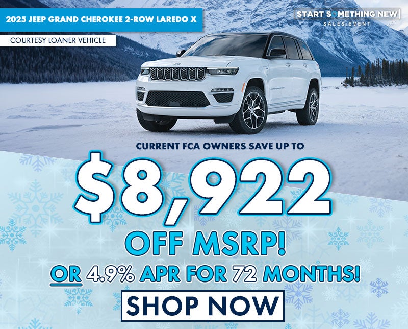 Based off Stock # 5JN041A. MSRP: $44,170. Sale price includes $3,172 Dealer Discount, $2,250 Retail Bonus Cash, $2,000 National Select Inventory Bonus Cash, & $1,500 National Stellantis Loyalty Retail Bonus Cash (Offer applies to owners/lessees of FCA US LLC vehicles towards the purchase of a new vehicle. No trade-in/turn-in required. Current vehicle must be registered to consumer at least 30 days prior to purchase to qualify.) Tax, title, license, fees additional. See New Holland Chrysler Dodge Jeep Ram for details. Expires 2/2/2026. 4.9% APR financing for 72 months equals $16.06 per month per $1,000 financed for well-qualified buyers through Stellantis Financial Services regardless of down payment. Not all buyers will qualify. Not valid with any other incentive programs or offers. Residency restrictions apply. See New Holland Chrysler Dodge Jeep Ram for details. Must take delivery by 2/2/2026.