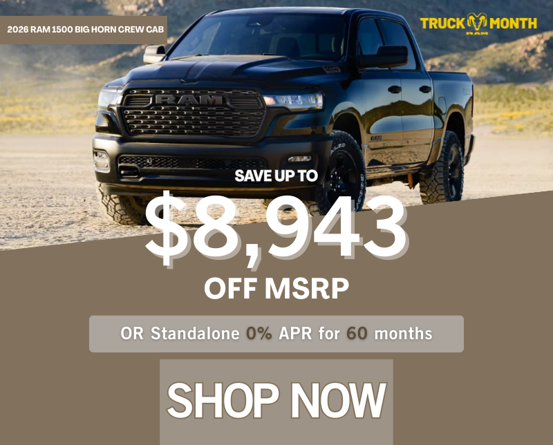 Based off Stock # 6RL018. MSRP: $62,330. Sale price includes $3,443 Dealer Discount, $3,500 National Retail Consumer Cash & $2,000 National Select Inventory Bonus Cash. Tax, title, license, fees additional. See New Holland Chrysler Dodge Jeep Ram for details. Expires 3/2/2026. 0% APR financing for 60 months equals $16.67 per month per $1,000 financed for well-qualified buyers through Stellantis Financial Services regardless of down payment. Not all buyers will qualify. Not valid with any other incentive programs or offers. Residency restrictions apply. See New Holland Chrysler Dodge Jeep Ram for details. Must take delivery by 3/2/2026.