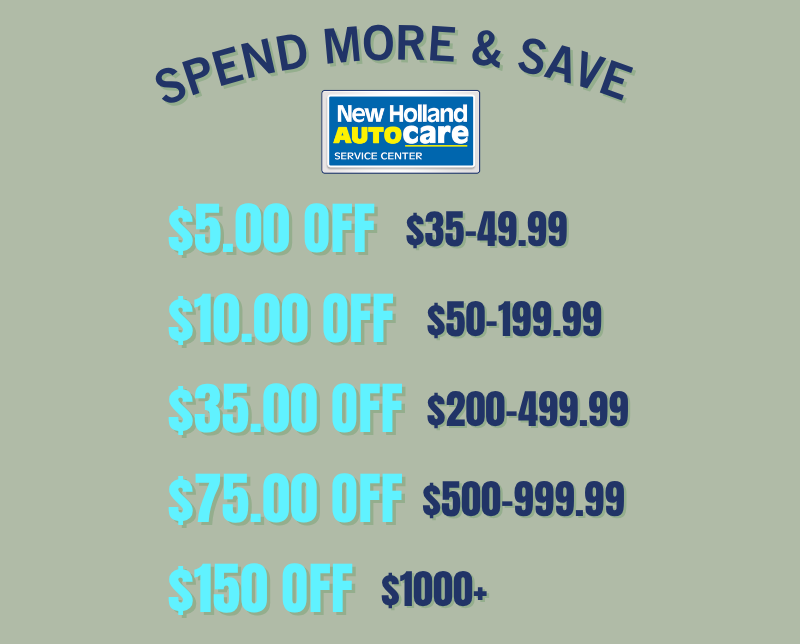 Must Present Coupon at time of write-up in order to receive the discount price. Not valid with any other offers or on prior purchases. Only valid at New Holland Auto Care. Service department only. See Service advisor for details. Expires 4/30/2026.