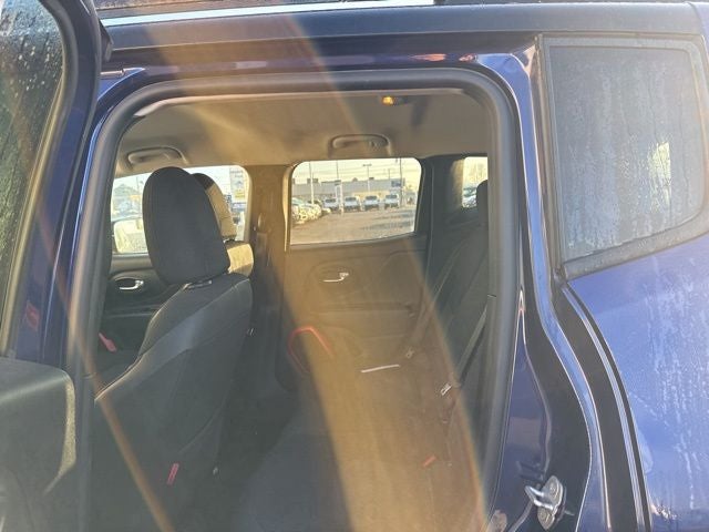 Renegade Trailhawk, 2.4L I4 MultiAir, 4WD, Jetset Blue, Black Cloth, 115V Auxiliary Power Outlet, 17 x 6.5 Aluminum Wheels, 4-Wheel Disc Brakes, 4.334 Axle Ratio, 6 Speakers, ABS brakes, Air Conditioning, Alloy wheels, AM/FM radio: SiriusXM, Anti-whiplash front head restraints, Brake assist, Compass, Delay-off headlights, Driver door bin, Driver vanity mirror, Dual front impact airbags, Dual front side impact airbags, Electronic Stability Control, Four wheel independent suspension, Front anti-roll bar, Front Bucket Seats, Front Center Armrest, Front fog lights, Front reading lights, Fully automatic headlights, Heated door mirrors, Illuminated entry, Knee airbag, Leather Shift Knob, Leather steering wheel, Low tire pressure warning, Manufacturer's Statement of Origin, Normal Duty Suspension, Occupant sensing airbag, Outside temperature display, Overhead airbag, Overhead console, Panic alarm, ParkView Rear Back-Up Camera, Passenger door bin, Passenger vanity mirror, Passive Entry Keyless Go Package, Passive Entry/Keyless Go (DISC), Power door mirrors, Power steering, Power windows, Premium Cloth Low-Back Bucket Seats, Quick Order Package 27E, Radio data system, Radio: Uconnect 5.0, Rain sensing wipers, Rear anti-roll bar, Rear window defroster, Rear window wiper, Remote keyless entry, Remote Start System, Roof rack: rails only, Speed control, Split folding rear seat, Spoiler, Steering wheel mounted audio controls, Tachometer, Telescoping steering wheel, Tilt steering wheel, Traction control, Trip computer, Turn signal indicator mirrors, Variably intermittent wipers, Voltmeter, Renegade Trailhawk, 2.4L I4 MultiAir, 4WD, Jetset Blue, Black Cloth.