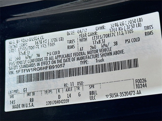 F-150 Raptor, 4D SuperCrew, 3.5L V6, 10-Speed Automatic, 4WD, Shadow Black, Black Leather, 10-Way Power Driver & Passenger Seats, 17 Cast Aluminum Wheels, 360 Degree Camera, 4-Wheel Disc Brakes, 4.10 Front Axle w/Torsen Differential, 7 Speakers, 8-Way Power Driver's Seat w/Power Lumbar, ABS brakes, Adaptive Cruise Control w/Collision Mitigation, Advanced Security Pack, Air Conditioning, Alloy wheels, AM/FM radio: SiriusXM, Ambient Lighting, Auto High Beam, Auto-dimming Rear-View mirror, BLIS Blind Spot Information System, Brake assist, CD player, Compass, Delay-off headlights, Driver door bin, Driver vanity mirror, Dual front impact airbags, Dual front side impact airbags, Dual-Zone Electronic Automatic Temperature Control, Electronic Locking w/4.10 Axle Ratio, Electronic Stability Control, Equipment Group 802A Luxury, Exterior Parking Camera Rear, Front anti-roll bar, Front Bucket Seats, Front Center Armrest, Front fog lights, Front License Plate Bracket, Front reading lights, Front wheel independent suspension, Fully automatic headlights, Heated Leather 40/Console/40 Front Seats, Heated Steering Wheel, Illuminated entry, Inflatable Rear Safety Belts, Integrated Trailer Brake Controller, Intelligent Access w/Push-Button Start, Lane-Keeping System, Leather steering wheel, LED Box Lighting, LED Side-Mirror Spotlights, Low tire pressure warning, Memory System (Seat, Pedal, Exterior Mirror), Occupant sensing airbag, Outside temperature display, Overhead airbag, Overhead console, Panic alarm, Passenger door bin, Passenger vanity mirror, Power door mirrors, Power driver seat, Power Glass Heated Sideview Mirrors, Power steering, Power Tilt/Telescoping Steering Column w/Memory, Power windows, Power-Adjustable Pedals, Power-Sliding Rear Window, Pro Trailer Backup Assist, Radio data system, Radio: Sony Single CD w/HD & SiriusXM Satellite, Raptor Technology Package, Rear Parking Sensors, Rear reading lights, Rear step bumper, Rear window defroster, Remote keyless entry, Remote Start System w/Remote Tailgate Release, Second-Row Heated Seats, Security system, Speed control, Speed-sensing steering, Split folding rear seat, Spray-In Bedliner (Pre-Installed), Steering wheel mounted audio controls, SYNC, SYNC 3, SYNC Connect, Tachometer, Tailgate Step w/Tailgate Lift Assist, Telescoping steering wheel, Tilt steering wheel, Traction control, Trip computer, Twin Panel Moonroof, Unique Cloth/Leather Trim Seats, Universal Garage Door Opener, Variably intermittent wipers, Voice-Activated Navigation, F-150 Raptor, 4D SuperCrew, 3.5L V6, 10-Speed Automatic, 4WD, Shadow Black, Black Leather.