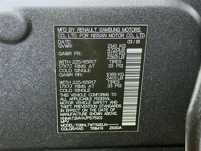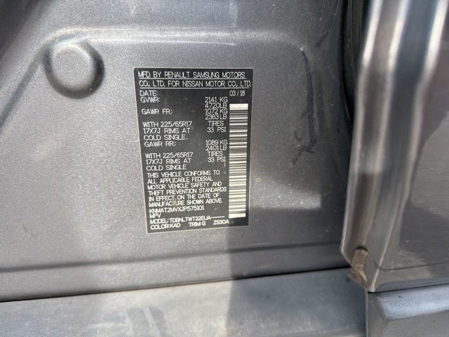 Rogue SV, 4D Sport Utility, 2.5L I4 DOHC 16V, AWD, Gun Metallic, Charcoal Cloth, 6 Speakers, Air Conditioning, AM/FM radio: SiriusXM, Automatic temperature control, CD player, Front dual zone A/C, Heated Leather-Wrapped Steering Wheel, Intelligent Aroundview Monitor (I-AVM), Intelligent Cruise Control, Memory Driver Seat & Outside Mirrors, Premium Package, Radio data system, Radio: AM/FM/CD/AUX, Radio: AM/FM/CD/AUX NissanConnect w/Navigation, Rear window defroster, 17 Aluminum Alloy Wheels, 4-Wheel Disc Brakes, 6.386 Axle Ratio, ABS brakes, Alloy wheels, Anti-whiplash front head restraints, Apple CarPlay/Android Auto, Black Splash Guards (Set of 4), Blind Spot Warning, Brake assist, Bumpers: body-color, Chrome Rear Bumper Protector, Cloth Seat Trim, Delay-off headlights, Driver door bin, Driver vanity mirror, Dual front impact airbags, Dual front side impact airbags, Electronic Stability Control, Floor Mats & 2-PC Cargo Area Protector, Four wheel independent suspension, Front anti-roll bar, Front Bucket Seats, Front Center Armrest w/Storage, Front reading lights, Fully automatic headlights, Heated door mirrors, Heated front seats, Illuminated entry, Leather Shift Knob, Low tire pressure warning, Occupant sensing airbag, Outside temperature display, Overhead airbag, Overhead console, Panic alarm, Passenger door bin, Passenger vanity mirror, Power door mirrors, Power driver seat, Power Liftgate, Power steering, Power windows, Quick Comfort Heated Front Bucket Seats, Rear anti-roll bar, Rear seat center armrest, Rear window wiper, Remote keyless entry, Roof rack: rails only, Security system, Speed control, Speed-sensing steering, Split folding rear seat, Spoiler, Steering wheel mounted audio controls, Tachometer, Telescoping steering wheel, Tilt steering wheel, Traction control, Trip computer, Turn signal indicator mirrors, Variably intermittent wipers, Rogue SV, 4D Sport Utility, 2.5L I4 DOHC 16V, AWD, Gun Metallic, Charcoal Cloth, 6 Speakers, Air Conditioning, AM/FM radio: SiriusXM, Automatic temperature control, CD player, Front dual zone A/C, Heated Leather-Wrapped Steering Wheel, Intelligent Aroundview Monitor (I-AVM), Intelligent Cruise Control, Memory Driver Seat & Outside Mirrors, Premium Package, Radio data system, Radio: AM/FM/CD/AUX, Radio: AM/FM/CD/AUX NissanConnect w/Navigation, Rear window defroster.