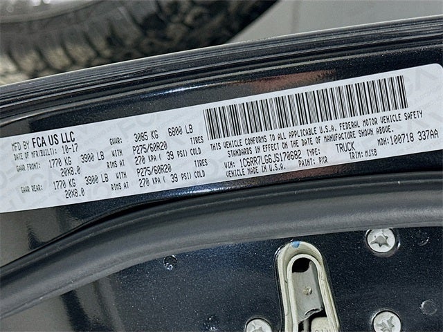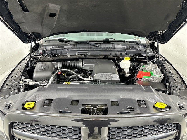 1500 Big Horn, Ford Blue Advantage: Blue Certified Certified, 4D Crew Cab, 3.6L V6 24V VVT, 4WD, Brilliant Black Crystal Pearlcoat, Diesel Gray/Black Cloth, 1-Yr SiriusXM Guardian Trial, 115V Auxiliary Power Outlet, 3.21 Rear Axle Ratio, 4-Wheel Disc Brakes, 40/20/40 Split Bench Seat, 6 Speakers, 8.4 Touchscreen Display, ABS brakes, Active Grille Shutters, Air Conditioning, Air Conditioning ATC w/Dual Zone Control, Alloy wheels, AM/FM radio: SiriusXM, Apple CarPlay, Audio Jack Input for Mobile Devices, Auto-Dimming Exterior Mirrors, Auto-Dimming Rear-View Mirror, Big Horn Badge, Big Horn Regional Package, Black Appearance Package, Black Exterior Mirrors, Black Headlamp Bezels, Black Painted Honeycomb Grille, Black Ram Head Tailgate Badge, Body Color Door Handles, Brake assist, Bright/Bright Billets Grille, Bumpers: chrome, Center Hub, Charge Only Remote USB Port, Class IV Receiver Hitch (DISC), Compass, Delay-off headlights, Driver door bin, Dual front impact airbags, Dual front side impact airbags, Electric Shift-On-Demand Transfer Case, Electroluminescent Instrument Cluster, Electronic Shift, Electronic Stability Control, Exterior Mirrors Courtesy Lamps, Exterior Mirrors w/Heating Element, Exterior Mirrors w/Supplemental Signals, Flat Black Ram 1500 Badge, Folding Flat Load Floor Storage, Front anti-roll bar, Front Armrest w/3 Cupholders, Front Center Armrest w/Storage, Front Center Seat Cushion Storage, Front Fog Lamps, Front reading lights, Front wheel independent suspension, Fully automatic headlights, Glove Box Lamp, Google Android Auto, GPS Antenna Input, HD Radio, Heated door mirrors, Illuminated entry, Integrated Voice Command w/Bluetooth®, Leather Wrapped Steering Wheel, LED Bed Lighting, Low tire pressure warning, Manufacturer's Statement of Origin, Media Hub (2 USB, AUX), Occupant sensing airbag, Outside temperature display, Overhead airbag, Overhead console, Overhead Console w/Garage Door Opener, Painted Front Bumper, Painted Rear Bumper, Panic alarm, ParkSense Front/Rear Park Assist System, ParkSense Rear Park Assist System, ParkView Rear Back-Up Camera, Passenger door bin, Passenger vanity mirror, Power 10-Way Driver Seat, Power door mirrors, Power Heated Fold-Away Mirrors, Power Lumbar Adjust, Power steering, Power windows, Power-Folding Mirrors, Premium Cloth 40/20/40 Bench Seat, Quick Order Package 22S Big Horn, Radio data system, Radio: Uconnect 4C w/8.4 Display, Rear 60/40 Split Folding Seat, Rear anti-roll bar, Rear Dome w/On/Off Switch Lamp, Rear Floor Mats, Rear Power Sliding Window, Rear seat center armrest, Rear step bumper, Remote keyless entry, Remote Start System, Remote USB Port, Security Alarm, Semi-Gloss Black Hub, SiriusXM Satellite Radio, Speed control, Steering Wheel Mounted Audio Controls,