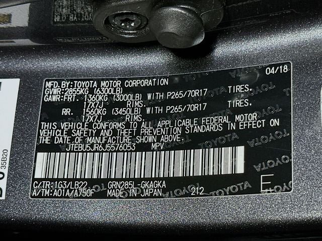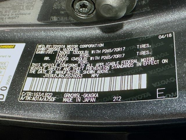 4Runner SR5, 4.0L V6 SMPI DOHC, 5-Speed Automatic with Overdrive, 4WD, Magnetic Gray, Graphite Cloth, 8 Speakers, AM/FM radio: SiriusXM, CD player, Power windows, Radio: Entune Audio Plus, 17 x 7.0 6-Spoke Alloy Wheels, 3.727 Axle Ratio, 4-Wheel Disc Brakes, ABS brakes, Air Conditioning, All-Weather Floor Liners & Cargo Tray, Alloy wheels, Anti-whiplash front head restraints, Brake assist, Bumpers: body-color, Door Edge Guards, Driver door bin, Driver vanity mirror, Dual front impact airbags, Dual front side impact airbags, Electronic Stability Control, Emergency communication system: Safety Connect, Exterior Parking Camera Rear, Front anti-roll bar, Front Bucket Seats, Front Center Armrest, Front fog lights, Front reading lights, Front wheel independent suspension, Heated door mirrors, Illuminated entry, Knee airbag, Leather Shift Knob, Leather steering wheel, Low Fabric Seat Trim, Low tire pressure warning, Occupant sensing airbag, Outside temperature display, Overhead airbag, Overhead console, Panic alarm, Passenger door bin, Passenger vanity mirror, Power door mirrors, Power driver seat, Power steering, Rear anti-roll bar, Rear seat center armrest, Rear window defroster, Rear window wiper, Remote keyless entry, Roof rack: rails only, Security system, Speed control, Speed-sensing steering, Split folding rear seat, Spoiler, Steering wheel mounted audio controls, Tachometer, Telescoping steering wheel, Tilt steering wheel, Traction control, Trip computer, Variably intermittent wipers, 4Runner SR5, 4.0L V6 SMPI DOHC, 5-Speed Automatic with Overdrive, 4WD, Magnetic Gray, Graphite Cloth, 8 Speakers, AM/FM radio: SiriusXM, CD player, Power windows, Radio: Entune Audio Plus.