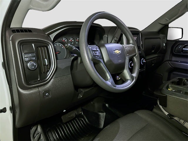 EcoTec3 5.3L V8, 8-Speed Automatic, Jet Black Vinyl, 170 Amp Alternator, 2 Speakers, 2-Speaker Audio System, 220 Amp Alternator, 3.5 Monochromatic Display Driver Info Center, 4-Wheel Disc Brakes, 40/20/40 Front Split Bench Seat, ABS brakes, Air Conditioning, AM/FM radio, Apple CarPlay/Android Auto, Auto High-beam Headlights, Automatic Emergency Braking, Auxiliary External Transmission Oil Cooler, Black (Semi-Gloss) Front Bumper, Black (Semi-Gloss) Rear Bumper, Bluetooth® For Phone, Brake assist, Delay-off headlights, Driver door bin, Dual front impact airbags, Dual front side impact airbags, Electrical Steering Column Lock, Electronic Cruise Control, Electronic Stability Control, External Engine Oil Cooler, EZ Lift Power Lock & Release Tailgate, Following Distance Indicator, Forward Collision Alert, Front anti-roll bar, Front Center Armrest w/Storage, Front Chrome Bumper, Front License Plate Kit, Front Pedestrian Braking, Front reading lights, Front wheel independent suspension, Fully automatic headlights, HD Rear Vision Camera, Heated door mirrors, Heated Power-Adjustable Outside Mirrors, Illuminated entry, Inside Rear-View Mirror w/Tilt, IntelliBeam Automatic High Beam On/Off, Lane Keep Assist w/Lane Departure Warning, Locking Tailgate, Low tire pressure warning, Manual Tailgate Function w/No EZ Lift, Manual Tilt Wheel Steering Column, Occupant sensing airbag, Outside temperature display, Overhead airbag, Overhead console, Panic alarm, Passenger door bin, Passenger vanity mirror, Power door mirrors, Power Front Windows w/Driver Express Up/Down, Power Front Windows w/Passenger Express Down, Power steering, Power windows, Preferred Equipment Group 1WT, Premium audio system: Chevrolet Infotainment 3, Radio data system, Radio: Chevrolet Infotainment 3 System, Rear Chrome Bumper, Rear reading lights, Rear step bumper, Remote Keyless Entry, Remote keyless entry, Rubberized-Vinyl Floor Covering, Solar Absorbing Tinted Glass, Speed-sensing steering, Standard Suspension Package, Standard Tailgate, Tachometer, Tilt steering wheel, Traction control, Trip computer, Variably intermittent wipers, Vinyl Seat Trim, Voltmeter, Wheels: 17 x 8 Bright Silver Painted Aluminum, Wheels: 17 x 8 Ultra Silver Painted Steel, EcoTec3 5.3L V8, 8-Speed Automatic, Jet Black Vinyl.