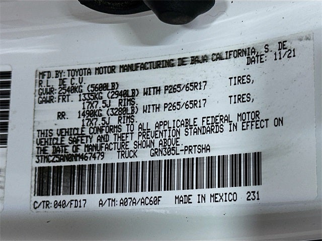 Tacoma TRD Sport V6, 4D Double Cab, 3.5L V6 PDI DOHC 24V LEV3-ULEV70 278hp, 4WD, White, Cement, ABS brakes, Active Cruise Control, Air Conditioning, Alloy wheels, Automatic temperature control, Electronic Stability Control, Front dual zone A/C, Heated door mirrors, Illuminated entry, Low tire pressure warning, Remote keyless entry, Traction control.