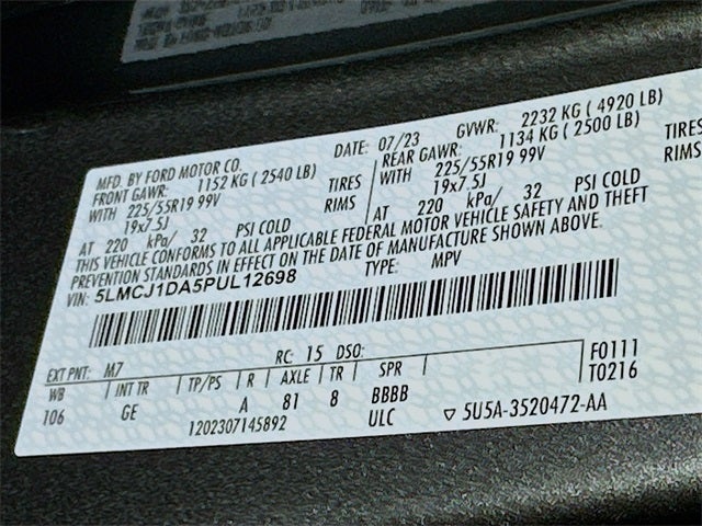 10 Speakers, 18 Bright Machined Aluminum Wheels, 19 Bright Machined Aluminum Wheels, 3.81 Axle Ratio, 360-Degree Camera, 4-Wheel Disc Brakes, 60/40 EasyFold Rear Seat w/Power Seatback Release, ABS brakes, Air Conditioning, Alloy wheels, AM/FM radio: SiriusXM, Auto High-beam Headlights, Auto-dimming Rear-View mirror, Automatic temperature control, Brake assist, Bumpers: body-color, Compass, Delay-off headlights, Driver door bin, Driver vanity mirror, Dual front impact airbags, Dual front side impact airbags, Electronic Stability Control, Emergency communication system: SYNC 4 911 Assist, Equipment Group 101A, Four wheel independent suspension, Frameless Auto Dimming Rearview Mirror, Front anti-roll bar, Front Bucket Seats, Front Center Armrest, Front dual zone A/C, Front reading lights, Front/Side/Rear Parking Sensors, Fully automatic headlights, Hands-Free Liftgate, Heated door mirrors, Heated front seats, Heated Sideview Mirrors, Heated Steering Wheel, Heated/Ventilated Driver & Front Passenger Seats, Illuminated entry, Knee airbag, Leather steering wheel, Lincoln Premium Audio System Subwoofer Delete, Lincoln Soft Touch Heated Comfort Seats, Low tire pressure warning, Memory seat, Micro-Perforated Lincoln Soft Touch Seats, Navigation system: Connected Navigation (3-year trial), Occupant sensing airbag, Outside temperature display, Overhead airbag, Overhead console, Panic alarm, Panoramic Vista Roof w/Power Shade, Passenger door bin, Passenger vanity mirror, Phone As A Key (PAAK), Power door mirrors, Power driver seat, Power Liftgate, Power passenger seat, Power steering, Power Tilt/Telescoping Steering Column w/Memory, Power windows, Radio data system, Radio: Lincoln Premium Audio System w/MP3, Rain Sensing Wipers, Rear anti-roll bar, Rear Parking Sensors, Rear reading lights, Rear seat center armrest, Rear window defroster, Rear window wiper, Remote keyless entry, Reverse Brake Assist, Security system, SiriusXM Radio, Speed control, Speed-sensing steering, Speed-Sensitive Wipers, Split folding rear seat, Spoiler, Steering wheel mounted A/C controls, Steering wheel mounted audio controls, SYNC 4 Communications & Entertainment System, Tachometer, Telescoping steering wheel, Tilt steering wheel, Traction control, Trip computer, Universal Garage Door Opener, Variably intermittent wipers, Wheels: 18 Warm Painted Alloy, Windshield Wiper De-Icer, Wireless Charging Pad.