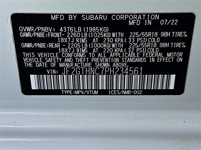 Crosstrek Limited, 2.5L 4-Cylinder DOHC 16V, AWD, Crystal White Pearl, Black W/Orange Stitching Leather, 3.70 Axle Ratio, 4-Wheel Disc Brakes, 6 Speakers, ABS brakes, Aero Crossbar Set, Air Conditioning, All-Weather Floor Liners, Alloy wheels, AM/FM radio: SiriusXM, Anti-whiplash front head restraints, Auto High-beam Headlights, Auto-Dimming Mirror w/Compass, Automatic temperature control, Brake assist, Bumpers: body-color, CD player, Driver door bin, Driver vanity mirror, Dual front impact airbags, Dual front side impact airbags, Electronic Stability Control, Emergency communication system: STARLINK Safety and Security (Subscription Required), Exterior Parking Camera Rear, Four wheel independent suspension, Front anti-roll bar, Front Bucket Seats, Front Center Armrest, Front fog lights, Front reading lights, Fully automatic headlights, harman/kardon Speaker System, Heated door mirrors, Heated Front Bucket Seats, Heated front seats, Illuminated entry, Knee airbag, Leather-Trimmed Upholstery, Low tire pressure warning, Moonroof & Navigation & harman/kardon Audio, Occupant sensing airbag, Outside temperature display, Overhead airbag, Overhead console, Panic alarm, Passenger door bin, Passenger vanity mirror, Power door mirrors, Power driver seat, Power Moonroof, Power steering, Power windows, Radio data system, Radio: Subaru STARLINK 8.0 Multimedia Nav System, Radio: Subaru STARLINK 8.0 Multimedia Plus System, Rear anti-roll bar, Rear Bumper Cover, Rear seat center armrest, Rear window defroster, Rear window wiper, Remote keyless entry, Security system, Speed control, Speed-sensing steering, Split folding rear seat, Spoiler, STARLINK/Apple CarPlay/Android Auto, Steering wheel mounted audio controls, Tachometer, Telescoping steering wheel, Tilt steering wheel, Traction control, Trailer Hitch, Trip computer, Turn signal indicator mirrors, Variably intermittent wipers, Wheels: 18 x 7.0J Alum Alloy Blk w/Machine Finish, Crosstrek Limited, 2.5L 4-Cylinder DOHC 16V, AWD, Crystal White Pearl, Black W/Orange Stitching Leather.