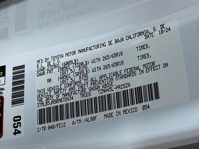 Tacoma TRD Sport, Toyota Gold Certified Certified, 4D Double Cab, 2.4L 4-Cylinder, 4WD, Black Cloth, 120V/400W AC Power Inverter, 6 Speakers, 8-Way Power Driver & Passenger Seat Adjusters, Air Conditioning, AM/FM radio: SiriusXM, Automatic temperature control, Deck DC Power Pre-wire, Deck Storage Box, Digital Key Capability, Front & Rear Parking Assist w/Automatic Braking, Heated Front Seats, Heated Leather-Trimmed Steering Wheel, Integrated Trailer Brake Controller, JBL Premium Audio, Power Horizontal Rear Window, Pre-Wired Auxiliary Switches, Qi-Compatible Wireless Charging, Radio: 14 Toyota Audio Multimedia (EF), Radio: 8 Toyota Audio Multimedia, Rear window defroster, TRD Sport Upgrade Package, 3.583 Axle Ratio, 4-Wheel Disc Brakes, ABS brakes, All Weather Floor Liners (TMS), Alloy wheels, Anti-whiplash front head restraints, Apple CarPlay/Android Auto, Auto High-beam Headlights, Auto-dimming Rear-View mirror, Brake assist, Bumpers: body-color, Door Edge Guard (TMS), Door Panel Scuff Protector (TMS), Driver door bin, Driver vanity mirror, Dual front impact airbags, Dual front side impact airbags, Electronic Stability Control, Emergency communication system: Safety Connect (1-year trial), Exterior Parking Camera Rear, Fabric Seat Trim (FE), Four wheel independent suspension, Front anti-roll bar, Front Bucket Seats, Front Center Armrest, Front fog lights, Front reading lights, Fully automatic headlights, Heated door mirrors, Illuminated entry, Knee airbag, Leather Shift Knob, Leather steering wheel, Low tire pressure warning, Occupant sensing airbag, Outside temperature display, Overhead airbag, Overhead console, Panic alarm, Passenger door bin, Passenger vanity mirror, Power door mirrors, Power steering, Power windows, Rear step bumper, Remote keyless entry, Security system, Speed control, Speed-sensing steering, Split folding rear seat, Spray-On Bed Liner (TMS), Steering wheel mounted audio controls, Tachometer, Telescoping steering wheel, Tilt steering wheel, Traction control, Trip computer, Turn signal indicator mirrors, Variably intermittent wipers, Wheels: 18 TRD Sport Alloy, Tacoma TRD Sport, 4D Double Cab, 2.4L 4-Cylinder, 4WD, Black Cloth, 120V/400W AC Power Inverter, 6 Speakers, 8-Way Power Driver & Passenger Seat Adjusters, Air Conditioning, AM/FM radio: SiriusXM, Automatic temperature control, Deck DC Power Pre-wire, Deck Storage Box, Digital Key Capability, Front & Rear Parking Assist w/Automatic Bra